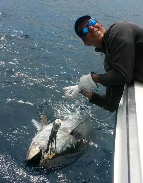 400 lbs Bluefin Tuna caught and released on the boat Cavalier