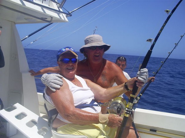 79 years old Denise Burrell Clements tagged and released this morning a 170 kilo Blue Marlin.