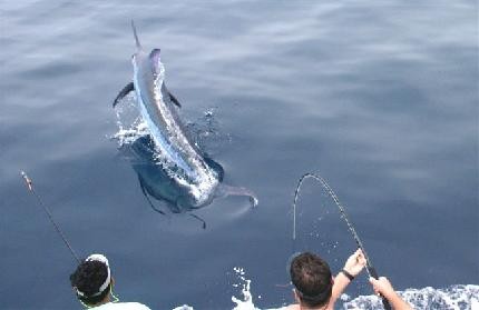 The first 3 till 4 minutes the Marlin was only playing with the lures, before she was hooked well.