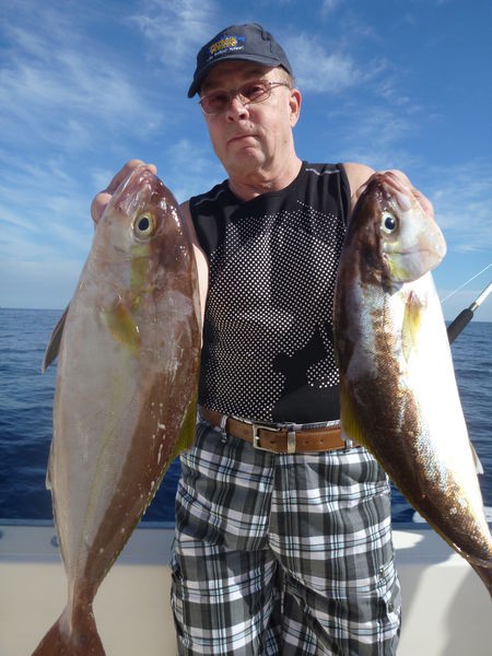 2 Amberjacks von Tatu Keinanen aus Finnland gefangen Cavalier & Blue Marlin Sport Fishing Gran Canaria