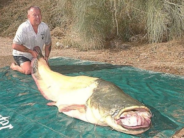 Fischer fängt Weltrekord 206-Pfund-Albino-Wels