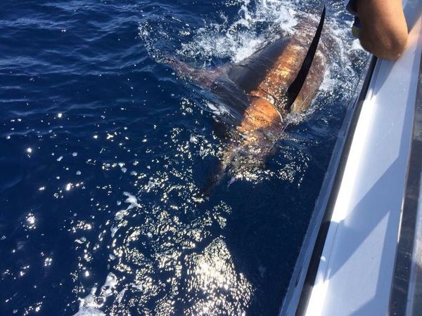 Blue Marlin - 240 kg Blue Marlin markiert und auf dem Cavalier veröffentlicht Cavalier & Blue Marlin Sport Fishing Gran Canaria