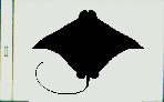 Bandera de color azul o negro con una imagen `blanca` de un pucudo o un pez aguja en el centro... Lee más »