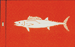 Bandera de color blanco con una imagen `Roja` de un albacora / atún blanco en el centro... Lee más »