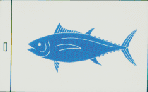 Bandera de color blanco con una imagen `azul` de un atún de aleta amarilla en el centro... Lee más »