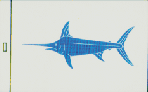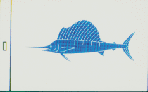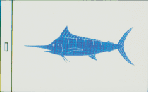 Bandera de color blanco con una imagen `azul` de un pez espada en el centro... Lee más »