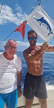 ¡¡¡¡Hoy nuestro pescador habitual Klaas Westerhof ha liberado su marlín azul Nr 25 en uno de nuestros barcos!!!!