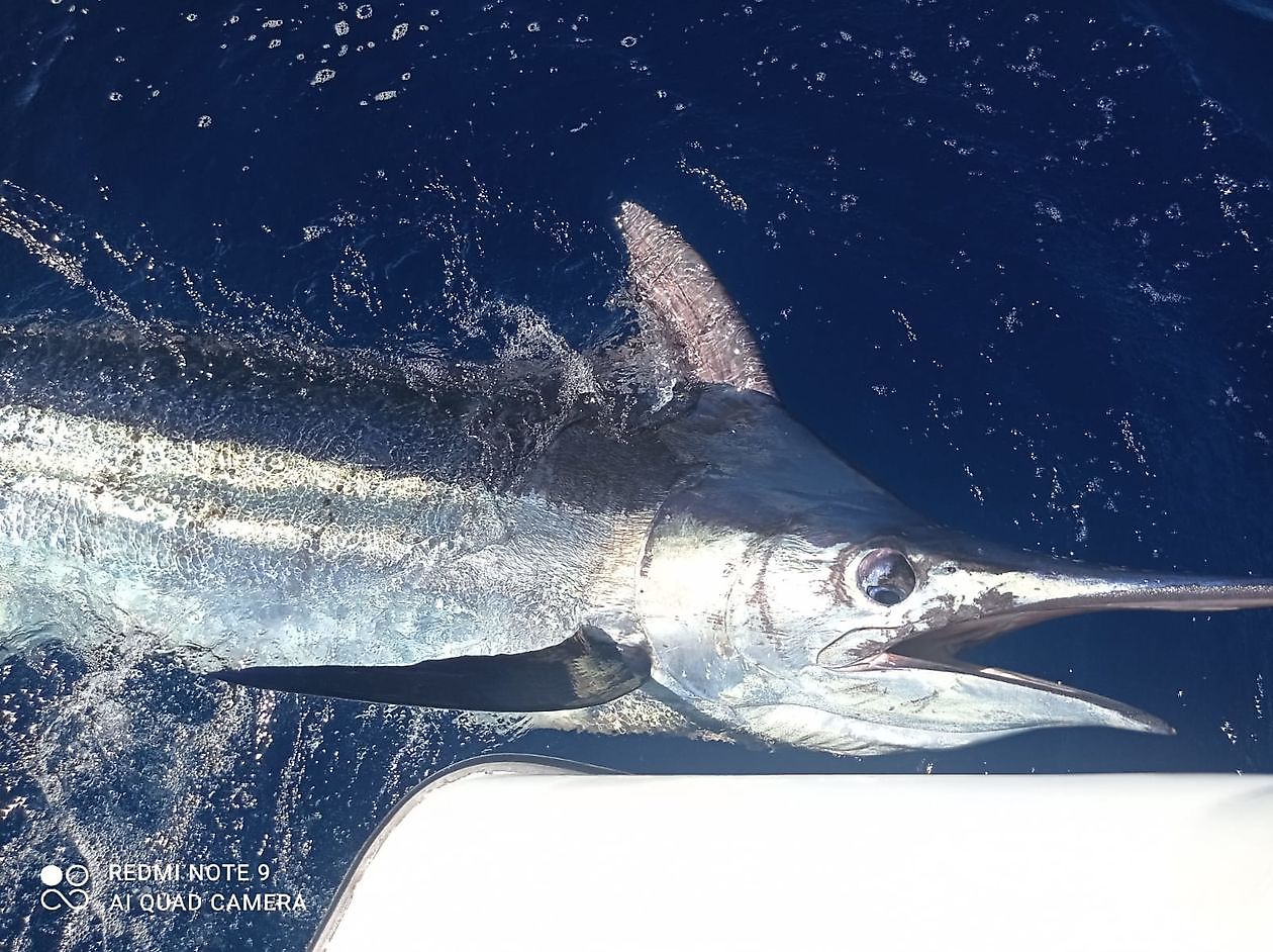 Après un combat de 40 minutes, il a pu sortir son premier Blue Marlin.