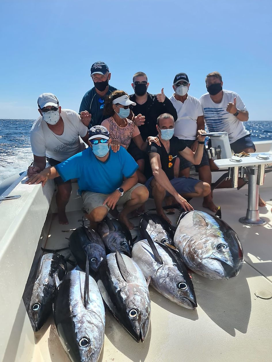 Nous avons accroché 9 thons germons et en avons attrapé 7. Également un thon Big Eye de 160 lb.