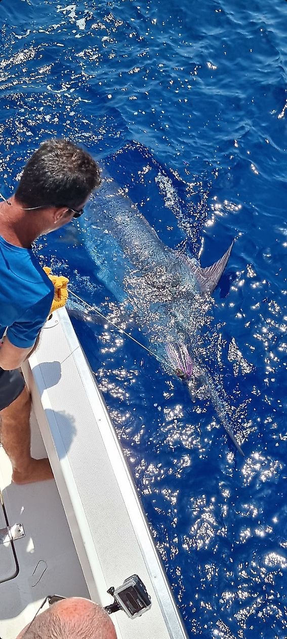 Une morsure sur sa canne ce matin, a abouti à la capture d`environ 400 livres Blue Marlin.