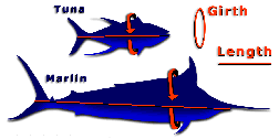 - Misura il pesce dalla punta del naso alla forcella della coda (questa sarà chiamata MISURA DELLA LUNGHEZZA).