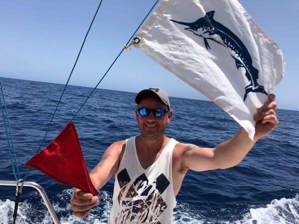 Om 13.00 uur was het gelukkig wel raak en werd er een schitterende Blauwe Marlijn gevangen door de Engelsman Christopher Wales.