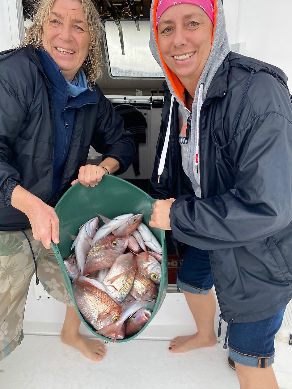 Zij hadden hun handen vol met de vangst van vele tientallen Zeebrasems.