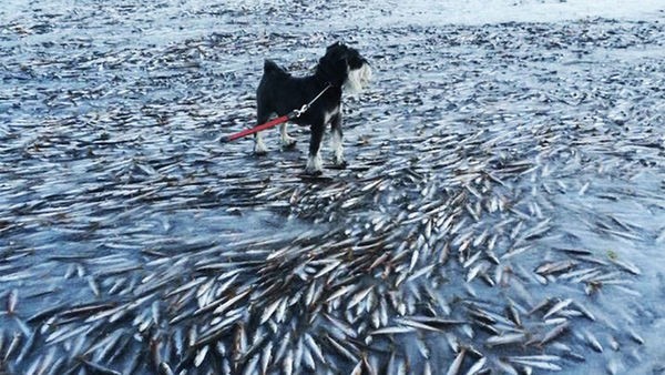 Een school haringen werd hier verrast door de snel dalende temperatuur welke in minder dan 30 minuten daalde van +1 naar -8 graden Celsius.