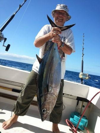 Tijdens een dagje slepend vissen op de boot Cavalier was hij namelijk de enige sportvisser welke een mooie Albacore Tonijn wist te landen.