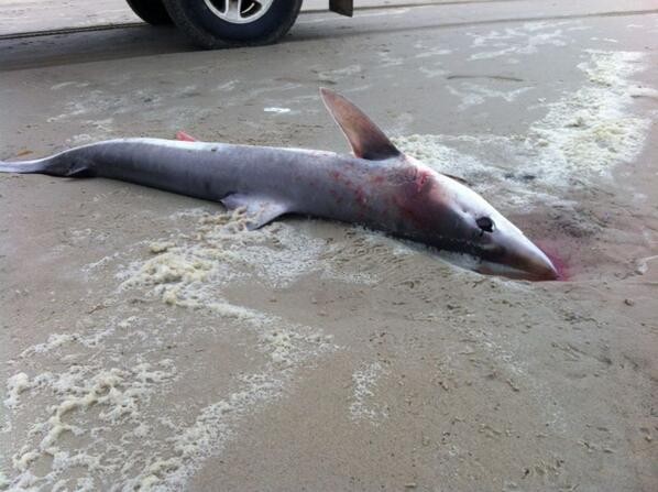 Een exemplaar zo groot als deze is echter schaars. De haai werd gevonden in de buurt van paal 3, al redelijk toegetakeld door vogels.