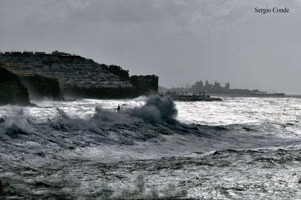 Het is de harde stormachtige wind welke vandaag alle sportvisboten, welke dagelijks vanuit Puerto Rico vertrekken, in de haven houdt.