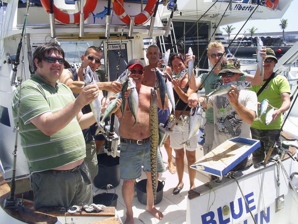Alle drie de boten visten op de bodem en de vangsten bestonden opnieuw uit verschillende engelhaaien, grote roggen, zaagbaars, roodbaars, bonito en vele tientallen makrelen.