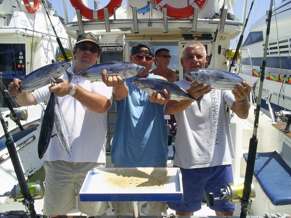 Gegokt werd er natuurlijk op de vangst van blauwe of witte marlijn. De heren moesten zich tevreden stellen met enkele skipjack tonijntjes.