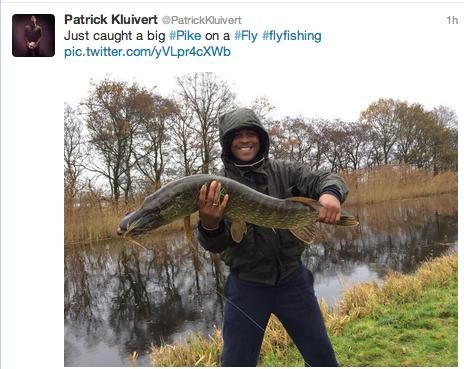 Patrick Kluivert slaat letterlijk een grote snoek aan de haak.