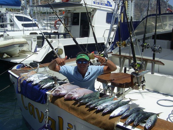 De boot Cavalier ving vandaag op 70 meter enkele mooie roodbaarsen, divesre roggen, een mooie ruwe haai en eveneens vele makrelen.