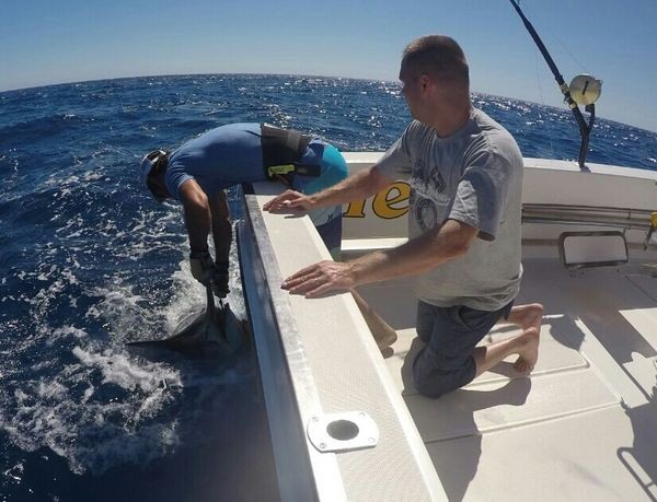Ik krijg net de melding binnen (16.50 uur) dat de Zweedse sportvisser Mr Anders een ruim 200 kilo zware Blauwe Marlijn heeft gevangen en losgelaten.