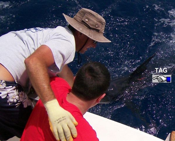 Na een spannende strijd konden we, de naar schatting, 140/150 kilo zware blauwe marlijn merken en weer loslaten.