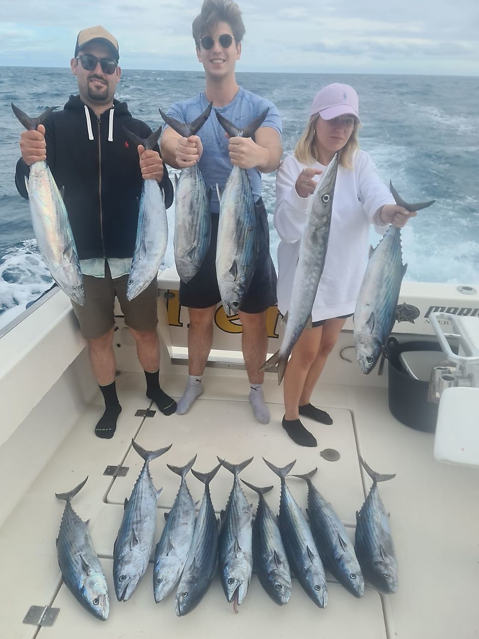 Zij wisten in enkeke uurtjes tijd maar liefst 14 Noord Atlantische Bonito's en 1 Barracuda te vangen. Met daarbij de nodige missers hadden zij een geweldige visdag.