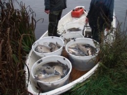 Sportvissers tellen vissen in het Leijsen ven in Boxtel