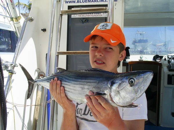 De Blue Marlin 3 kwam vandaag met de meeste vis naar de haven. De baracuda van Dillen Arens mocht er zijn, zo ook de atlantische bonito van broer Glenn.