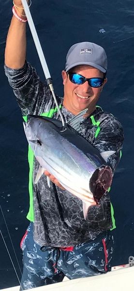 Ook vanmorgen weer volop Skipjack Tonijn, waarvan er één tijdens de run door een flinke Wahoo werd gegrepen.