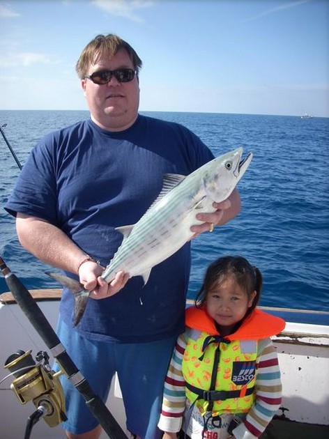 Jari Laakkonen, together with his daughter, shows us a North Atlantic Bonito.