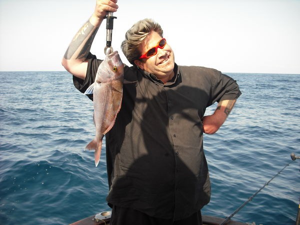 17 STRÅLAR PÅ 1 RESA Tja, tja, ja, vilken galen fiskedag. 4 holländare, 1 engelska, 1 norska och 1 Canario. De fiskade förra lördagen på båten Cavalier och fångade tillsammans 17 strålar. Den största, cirka 40 kilo tunga Stingray, fångades av engelsmannen Ken Jardine. Den norska fiskaren Stein Angsund fångade också en 25 kilo Stingray. De flesta strålarna (6) på denna fisketur har fångats av Cees Pipping från Holland. Igår hade besättningen på båda båtarna sin lediga dag. På Blue Marlin 3 idag, inga strålar, men några mycket bra storlek Red Snappers, Atlantic Bonito och en Barracuda. Äran att vara vårt dags foto tillkommer den elva år gamla tyska fiskaren Erik. Erik fångade på sin resa en av de tyngsta Red Snappers. Många fler fotografier av de senaste två fiskedagarna hittar du i vårt månadens fotoalbum. Holländaren Hans
