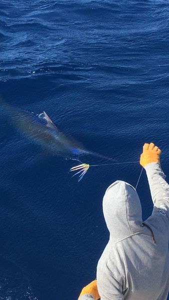 Båten Cavalier släppte idag ännu en Blue Marlin. Fisken har fångats av Alfred Appel. Paul van den Hurk och Alfred fick också en Atlantic Bonito. Blue Marlin uppskattades av besättningen till 300 kg Hans Canaria Fishing News