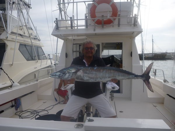 4 WAHOO`S Tja, tja, tja, vilken fantastisk dag med fiske. 4 Wahoo kunde inte motstå frestelsen att attackera våra beten. Cees Pipping har idag utsetts till vårt foto för dagen och fångat en av de fyra Wahoo-bilderna. Freek Morees, fångad i morse 2 Wahoo och Wahoo nummer 4 har fångats av Ed Schoonacker från Belgien. Fångster av Red Snappers, Moray Eels och Skipjack Tuna har gjort denna dag till en riktig händelse. Hans