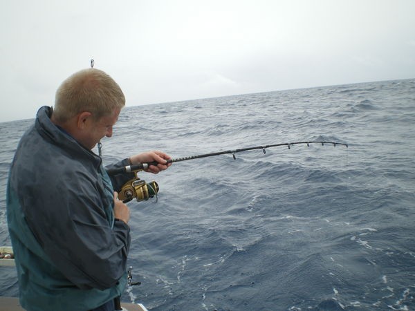 ATLANTIC BONITO I dag hade båtarna CAVALIER och EXPLORAMAR goda fångster och nöjda kunder. Billy fiskade med de två irländska sportfiskarna Pat och Fred Lucas på Puerto Rico-revet. De fångade några Red Snappers och en Atlantic Bonito. CAVALIER gjorde mer eller mindre detsamma på Pasito Blanco-revet. Två Atlantic Bonito's fångades här av Göran Holtgren från Sverige och den engelska fiskaren Adrian Elmore. Också på denna fisketur några Red Snappers, en gemensam stingray och massor av spanska havsbrädor. Hans