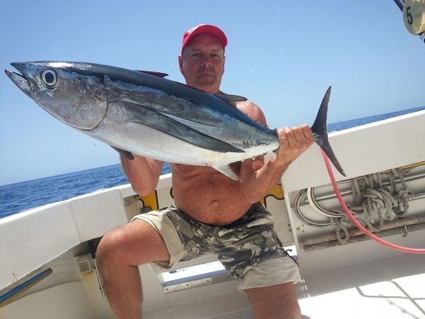 Cavalier chartrades i morse av sportfiskaren Stephan Mostrom. Stephan lyckades fånga två vackra Albacores idag. Grattis amigo !!! Mycket sorgligt för för att han på samma resa missade en bit från en vit Marlin och också från en Wahoo av bra storlek. Besättningen såg även Big Eye och Yellow Fin Tuna och en Blue Marlin förutom båten .......... whoooooooowwww !!! På eftermiddagsresan (som inte är klar än!) Fångade Cavalier igen 6 Albacores och förlorade ytterligare två. Båten BLUE Marlin 3 fångade i morse 7 Albacores Charterbåten Reel Time fiskade idag en av sina bästa dagar. På den här båten fanns idag fem stora Albacores och 3 Dorado fångade. Också en Blue Marlin märktes och släpptes och en andra Blue Marlin förlorades under striden. Den privata båten Billfish Fever fångade idag 4 Albacores och 1 Dorado. Från hamnen i Puerto de Mogan fiskade Calrei-stadgan. Kapten Randy fångade idag Albacores och missade tyvärr 2 bitar av White Marlin Båten Alcor också från Puerto de Mogan fångade i morse 2 Albacores Lite otur för Erik som idag saknade en bit från en White Marlin Båten FishOn från Pasito Blanco släppte idag en 450 lbs Blue Marlin på morgonen och en White Marlin på eftermiddagen. Kanske har jag glömt en eller flera fiskebåtar i de här fiskenyheterna, så ledsen för dem ...... Så en fiskedag med bra fångster för de "mest" båtarna och förhoppningsvis fortsätter festen imorgon? Hans fiske nyheter