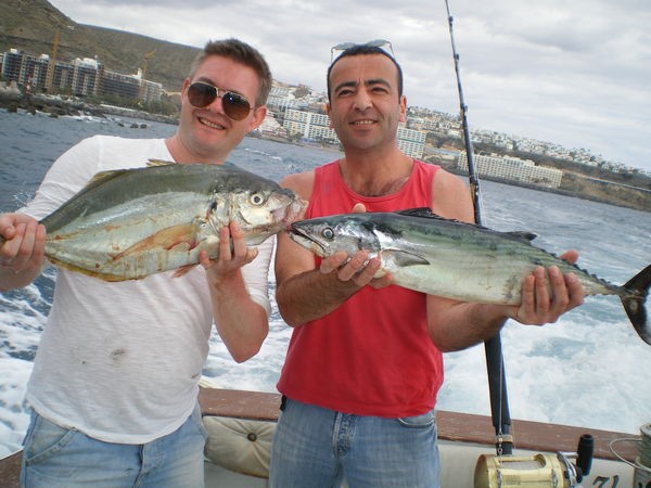 GUL TAIL Om du tittar på bilderna på vår hemsida, i de olika fotoalbumen från tidigare år, och dessa jämfört med de i år (i vinter) kommer du att märka att det plötsligt fångas många andra fiskar. Våra båtar fångades under de föregående åren, särskilt Rays, men den här vintern har det fångats mestadels Amberjacks, Sierra och olika arter av revfiskar. Och visst, det är därför de kallar det fiske. Du vet aldrig! Det var sportfiskaren Einarby från Norge som fångade en vacker gul svans på CAVALIER. En atlantisk Sierra-tonfisk har fångats av Said Mohamed från Holland. 3 Amberjacks och 1 Atlantic Sierra Tuna fångades på båten EXPLORAMAR. De lyckliga fiskarna här ombord var John Ferry och Thomas, båda från Storbritannien. Hans