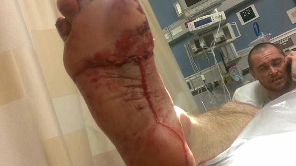 En 30-årig man i Brevard County biten av en haj nära Cocoa Beach Pier tisdag eftermiddag tillbringar natten på Health First Cape Canaveral Hospital när han förbereder sig för operation onsdag morgon. Läkare hoppas att kirurgi kommer att reparera de skadade senorna i Bobby Baughmans högra fot. Baughman, en fiskare och surfare, blev biten av en 5-fots haj omkring 14:30 tisdag. Den halvmåneformade biten var flera centimeter lång och sträckte sig från tårna och nådde nästan hans fotled. Hans källa: Orlando Sentinel