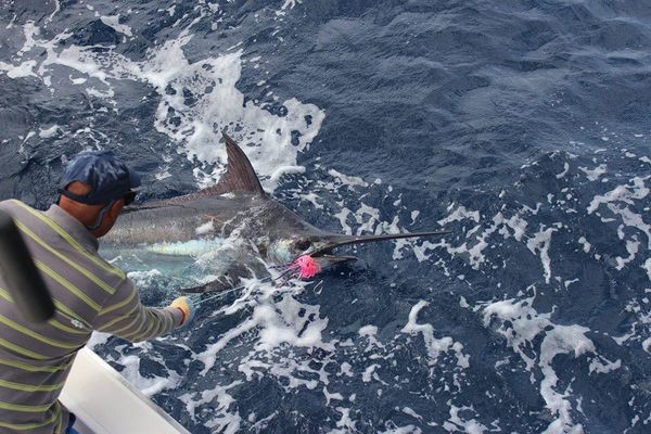 Idag har det blivit igen en Blue Marlin taggad och släppt. Den här gången var det båten Reel Time som var den lyckliga. Också på Blue Marlin 3 hade i morse en kontakt med en billfidh, men den här fisken drog kroken efter en 15 meters körning. En privat båt från Puerto de Mogan återvände klockan 15 i hamnen med en bra Dorado-storlek. En 25 kilo Wahoo fångades av båten Barakuda Dos. Så igen idag lite aktivitet Hans Fishing News