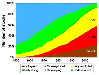Människor har nu tekniken för att hitta och fånga alla sista fiskar på planeten. Trålnät, drivgarn, långrev, GPS, ekolod ... Som ett resultat har fiskeriverksamheten expanderat till praktiskt taget alla hörn av havet under det senaste århundradet. Atlantfiskets fiske försöker fortfarande begränsa överfiske av menhaden med traditionella fångstbegränsningar. (Sarah L. Voisin / The Washington Post) Atlantfiskets fiske försöker fortfarande begränsa överfiske av menhaden med traditionella fångstbegränsningar. (Sarah L. Voisin / The Washington Post) Detta har i sin tur belastat fiskpopulationerna. Världens marina fiske nådde sin topp under 1990-talet, när den globala fångsten var högre än idag. * Och bestånden av viktiga kommersiella arter som blåfenad tonfisk och torsk har minskat och i vissa fall fallit mer än 90 procent. Så hur illa överfiskar vi haven? Kommer fiskpopulationerna att fortsätta krympa varje år - eller kan de återhämta sig?