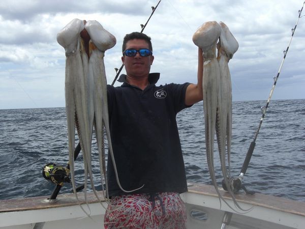 MARLIN eller TUNA? Blue Marlin 3 lämnade i morse hamnen för en av de berömda delcharterna. Till förmån för kunderna och för att ge dem bästa möjliga möjlighet att fånga fisken de vill fånga allt trolling på Blue Marlin 3 kommer att göras på antingen Part, Half eller Full Charters. På delstadgan kommer Blue Marlin 3 att fiska högst 6 personer (4 fiskare och 2 åskådare) och med 9 stavar, så att de kan garantera att varje fiskare kommer att använda 2 stavar och för 25% av resan kommer de att ha 3 stavar. Med minskat antal kunder för att förbättra kundnöjdheten och öka sina kunders chanser att fånga fisk av god kvalitet istället för att fylla båten med människor för att öka vinsten, har Blue Marlin 3 byggt upp ett mycket gott rykte och kundbas, varför de är enda båt tillräckligt säker för att kunna erbjuda denna otroliga möjlighet till sina kunder. Blue Marlin 3 anser att med ökade kostnader och ett begränsat antal fiskar per kund är dessa förändringar både nödvändiga och fördelaktiga för dem och deras kunder. I morse hakade en av sportfiskarna ombord på en av de 80 kg stavarna. Fisken tog cirka 50 meter linje från rullen och tyvärr spottade hon ut kroken igen. Var det en stor tonfisk eller kanske den första Marlin 2009? Vi kommer aldrig att veta, men att de stora är där igen är det 100% säker. På Cavalier i morse en grupp finska fiskare. De fångade några bra storlek bläckfisk och några tunga strålar. Fotografierna från denna resa hittar du i våra fotoalbum: Foto av dagen och Foto av månaden. Holländaren Hans