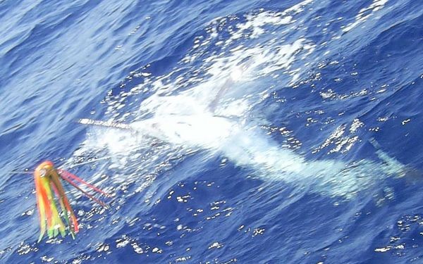 Vi anslöt i morse, tre gånger med en blå marlin, och tre gånger tog fisken en springa cirka 10 meter och hon var borta igen.
