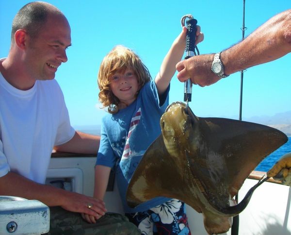 De fångade fyra strålar som väger mer än 80 pund och även cirka 20 pund örnstrålar.