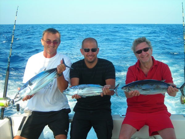 Idag trollade de igen och fångade manniga skipjackl-tonfiskar.