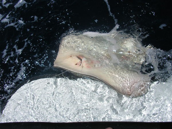 SHARK FISHING Idag var det bara båten Lucky Ruby G som lämnade hamnen. Båten chartrades av familjen Boerboom från Holland. Drömmen för dessa fiskare var att fånga en eller flera hajar, så besättningen försökte allt, men ............ det kallas fiske och inte fånga. Tyvärr inga hajar på denna resa, men några vanliga Stingrays av god storlek. Holländaren Hans